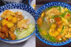 Cháo cay Hải Phòng với phần cháo được xay nhuyễn, mịn màng